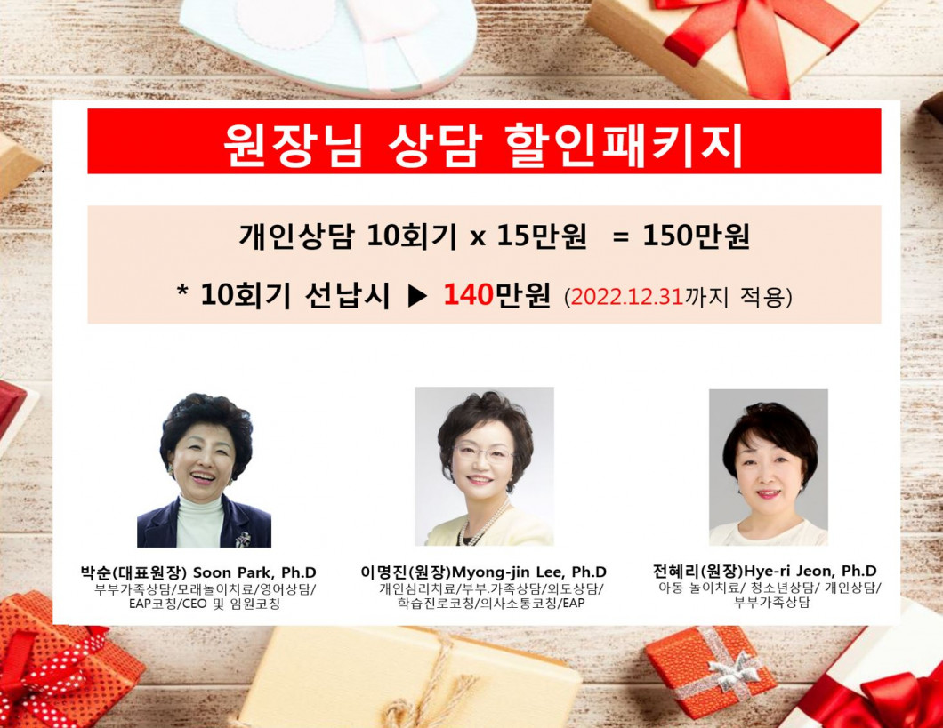 신규 상담시 원장님 할인 패키지 적용하여 많은 혜택 누리기시 바랍니다.