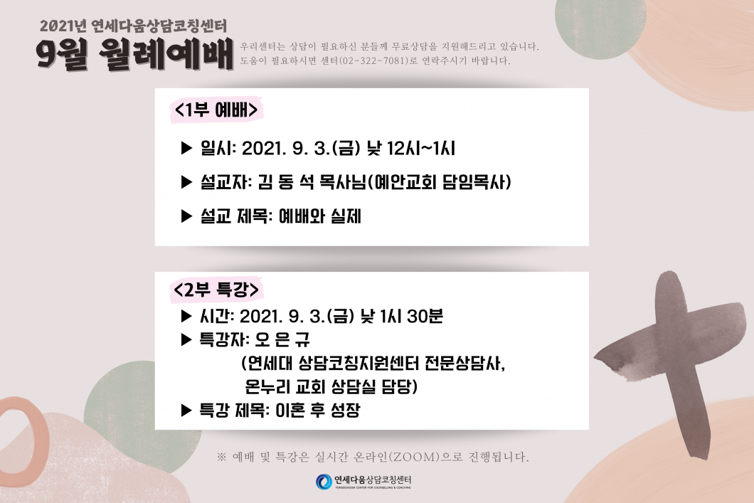 2021년 9월 월례예배 & 월례특강(이혼 후 성장)